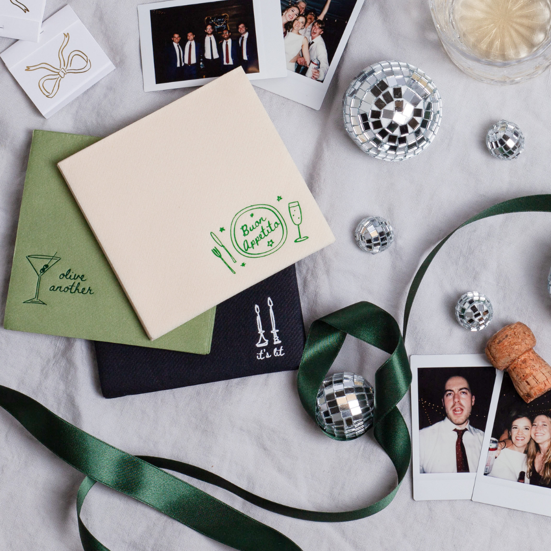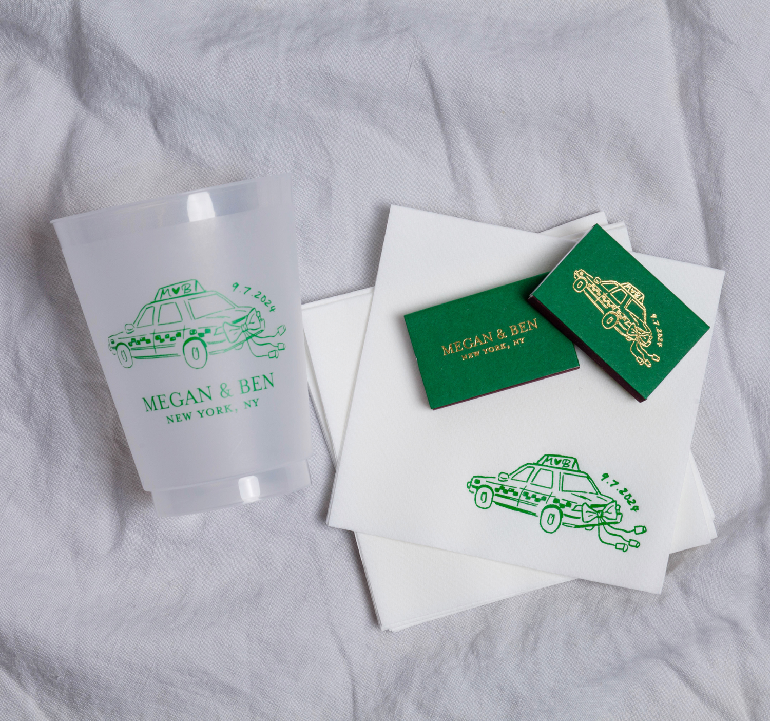 Imagine...a perfectly branded suite of napkins, cups, and matchbox favors for your upcoming soirée!