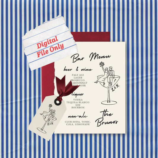 Custom Coupe Glass Couple Digital File: Wedding Stationery (PDF & PNG)