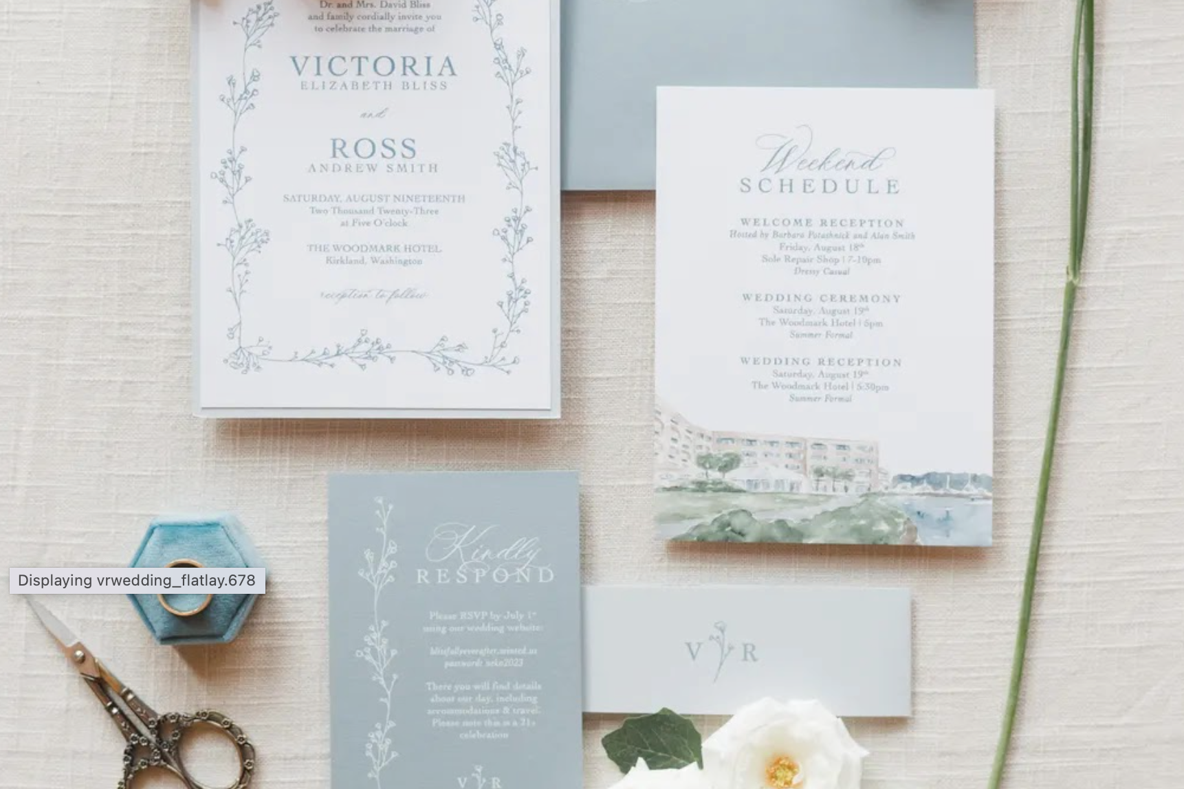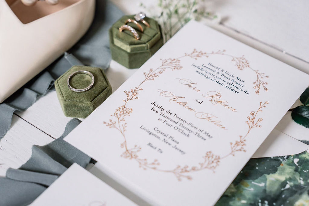 We'll help you define your wedding aesthetic starting with your Save the Dates and matching it all the way to your Day of Details. An entirely custom and cohesive look for your wedding.