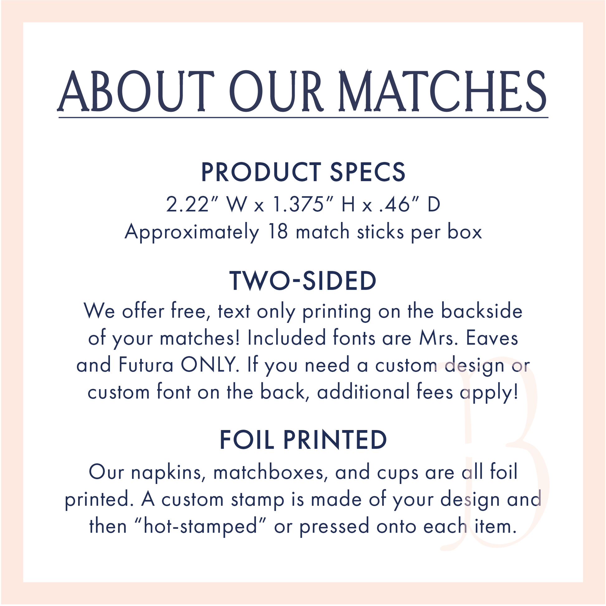 Premium matches perfect for customizing your party or event!
